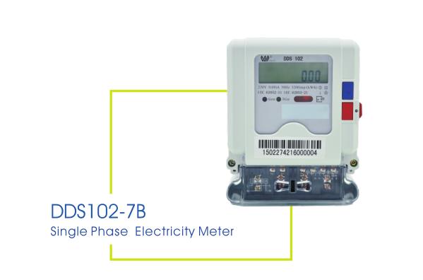 DDS102-7B is a single phase two wires class 1 static electricity meter that has been designed to meet the latest IEC standards and requirements of electricity utilities.